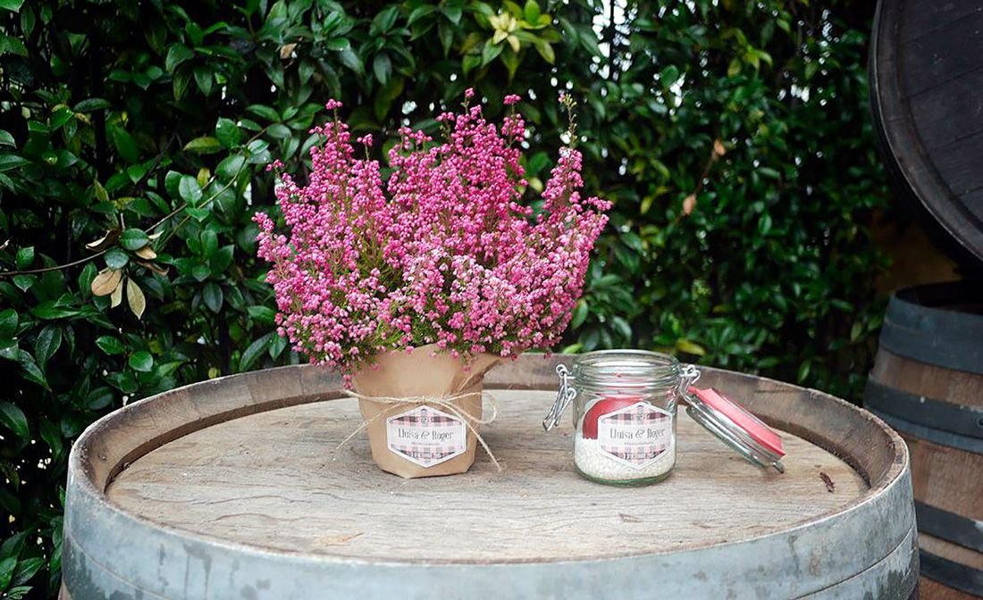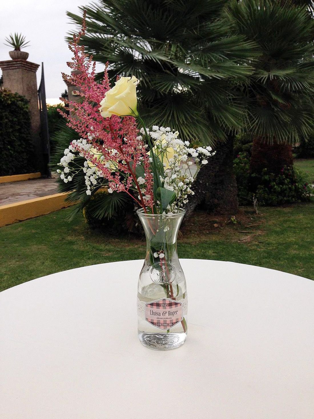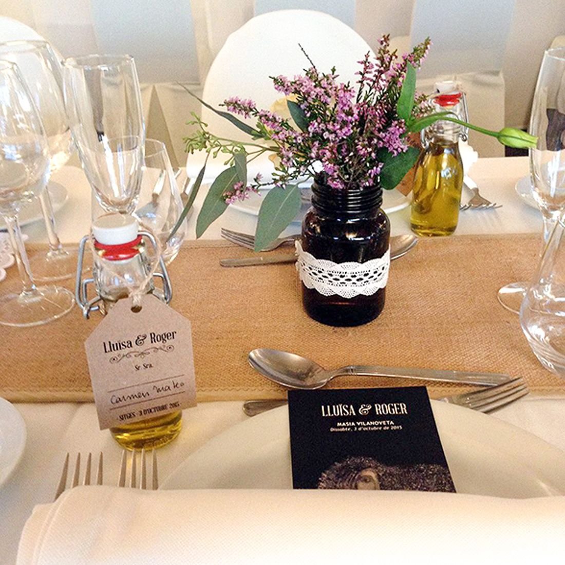 Elaboración de unas pequeñas botellas de aceite como regalo para los invitados.